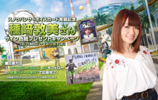 ボイスカード「スノウパンサー(CV. 種﨑敦美)」実装を記念して直筆サイン色紙が当たるキャンペーンを実施します。キャンペーン期間中に公式Twitter(@PUBGMOBILE_JP)をフォロー&対象のツイートをRTしてくださった方の中から抽選で5名様に種﨑敦美さんの直筆サイン色紙をプレゼント! ▼ボイスカード「スノウパンサー(CV. [もっと見る]