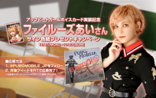 ボイスカード「アップビートガール(CV. ファイルーズあい)」実装を記念して直筆サイン色紙が当たるキャンペーンを実施します。キャンペーン期間中に公式Twitter(@PUBGMOBILE_JP)をフォロー&対象のツイートをRTしてくださった方の中から抽選で5名様にファイルーズあいさんの直筆サイン色紙をプレゼント! ■開催期間 [もっと見る]