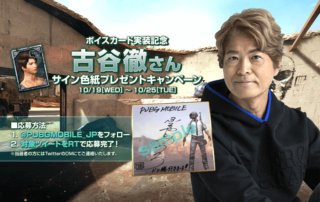 ボイスカード「古谷徹A」が『PUBG MOBILE』に新登場!これを記念して直筆サイン色紙が当たるキャンペーンを実施します。 キャンペーン期間中に公式Twitter(@PUBGMOBILE_JP)をフォロー&対象のツイートをRTしてくださった方の中から抽選で4名様に古谷徹さんの直筆サイン色紙をプレゼント! [もっと見る]