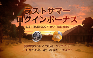 夏の終わりもPUBG MOBILEで楽しもう!ラストサマーログインボーナス開催! 毎日ゲームにログインして報酬を手に入れよう! [もっと見る]