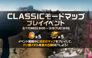CLASSICモードの各マップをプレイするプレイイベントを開催! イベント期間中に指定された回数プレイして「ドン勝メダル」と「Collectorチケットのかけら」を手に入れよう! ■開催期間 [もっと見る]