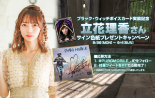 ボイスカード「ブラック・ウィッチ(CV. 立花理香)」実装を記念して直筆サイン色紙が当たるキャンペーンを実施します。キャンペーン期間中に公式Twitter(@PUBGMOBILE_JP)をフォロー&対象のツイートをRTしてくださった方の中から抽選で5名様に立花理香さんの直筆サイン色紙をプレゼント! ▼ボイスカード「イケイケハンター(CV. [もっと見る]