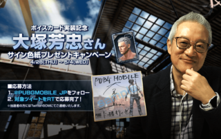 ボイスカード「大塚芳忠A」実装を記念して「直筆サイン色紙」が当たるキャンペーンを実施します。 キャンペーン期間中に公式Twitter(@PUBGMOBILE_JP)をフォロー&対象のツイートをRTしてくださった方の中から抽選で5名様に大塚芳忠さんの直筆サイン色紙をプレゼント! ※ボイスカード「大塚芳忠A」のサンプルボイスをPUBG [もっと見る]