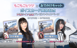 ボイスカード「もこもこヒツジ(cv.田中理恵)」と「おでかけキャット(cv.村川梨衣)」」実装を記念して直筆サイン色紙が当たるキャンペーンを実施します。キャンペーン期間中に公式Twitter(@PUBGMOBILE_JP)をフォロー&対象のツイートをRTしてくださった方の中から抽選で10名様に田中理恵 さんと村川梨衣さんの直筆サイン色紙をプレゼント! ▼ボイスカー「もこもこヒツジ(cv.田中理恵)」と「おでかけキャット(cv.村川梨衣)」を動画でチェックしよう! [もっと見る]