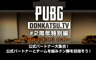 『PUBG MOBILE』日本リリース2周年を記念した 「DONKATSU.TV 2周年特別編」を2020年5月16日(土)20時より生配信いたします! [もっと見る]